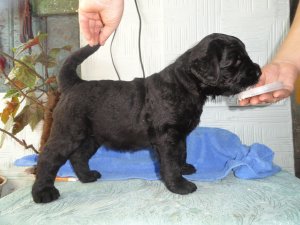Великолепные щенки Русского черного терьера, 23.12.14 г. р. от крупных и костистых родителей, призеров выставок, с отличной психикой и хорошими рабочими качествами. Щенки отлично выращены, с хорошим экстерьером, клеймённые, с документами РКФ, продаются в надёжные и любящие руки. Помощь в выращивании. Хвостатая девочка подороже. На фото малышам 1м. 3 дня.